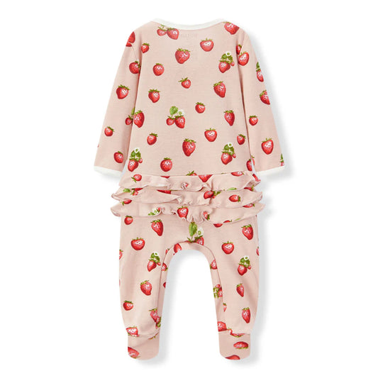 Strawberry Organic Cotton Ruffle Zipper Footed Romper
