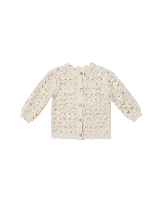 Pointelle Button Down Cardigan in Ivory