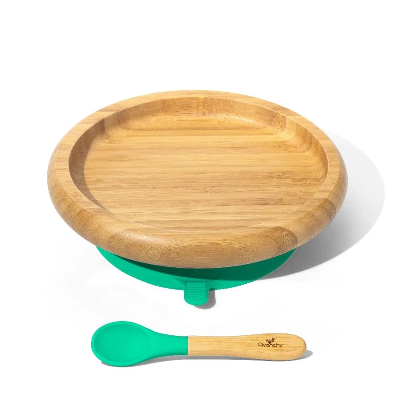 Combining sleek design with practicality, the long-awaited, no-divider Bamboo Suction Classic Plate and Spoon is a must-have feeding solution for all ages. Enjoy the flexibility that this undivided plate offers. The Classic Plate is crafted of organic bamboo. The removable silicone suction ring sticks strongly to any hard surface to prevent accidental—or intentional!—spills and throws. Suitable for children aged 4 months to 72 months.