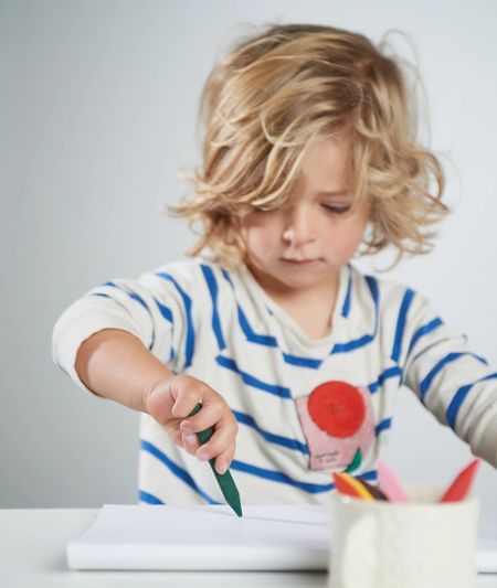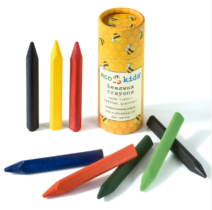 Eight vibrant natural beeswax crayons are non-toxic, safe, and packed in a reusable cardboard tube.