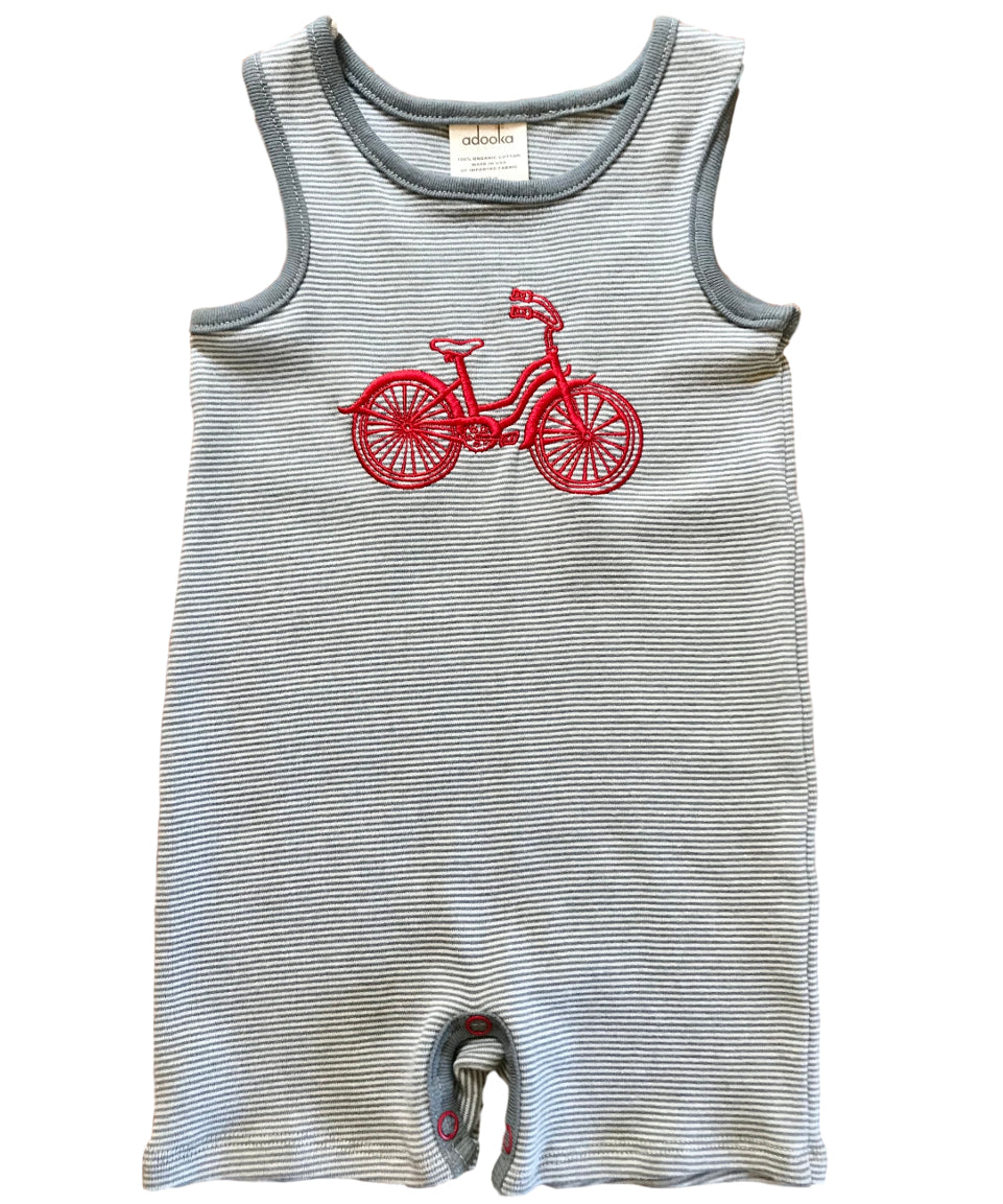 Made of the softest cotton. Tank style romper with Bicycle embroidery.