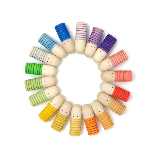 A play set of Buds (Brots) in twelve colors. A set to match the Grapat Sticks or for imaginative play on their own.