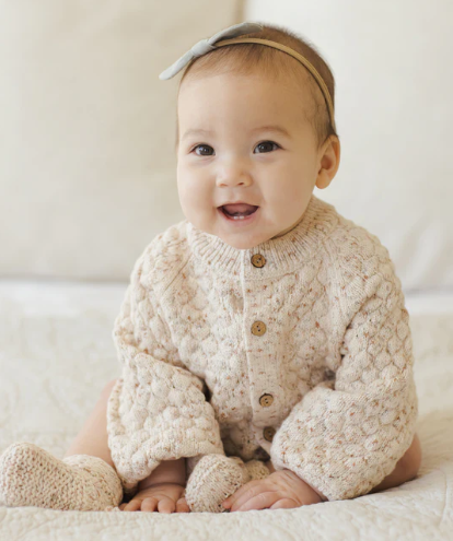 Our darling Bubble Knit Cardigan adds cozy texture and warmth to your little gal’s fall and winter wardrobe. Pair it with our Knit Bloomers and Knit Bonnet for a complete look.