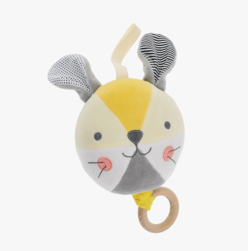 Pull the wooden ring on this Bunny Musical Soft Mobile to play 2 minutes of 'You Are My Sunshine', and relax as the soothing melody creates a calming environment.