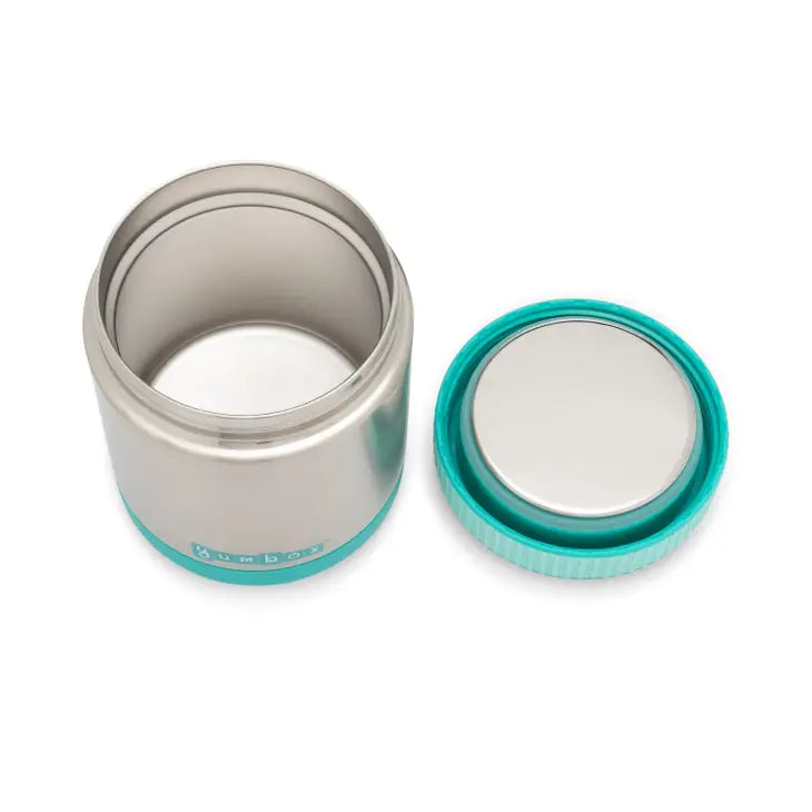 Keeps food warm 6-8 hours Keeps food cold up to 8 hours, use ice pack. Removable silicone band makes carrying a utensil easy. Pack your favorite Foods: soups, pasta, stews, leftovers, yogurt parfaits, fruit salad, cereals in this wide mouth thermos. Pair with Yumbox Snack, Yumbox Original or Yumbox Panino and pack cold foods like cheese, crackers, sandwiches and fruits separately.