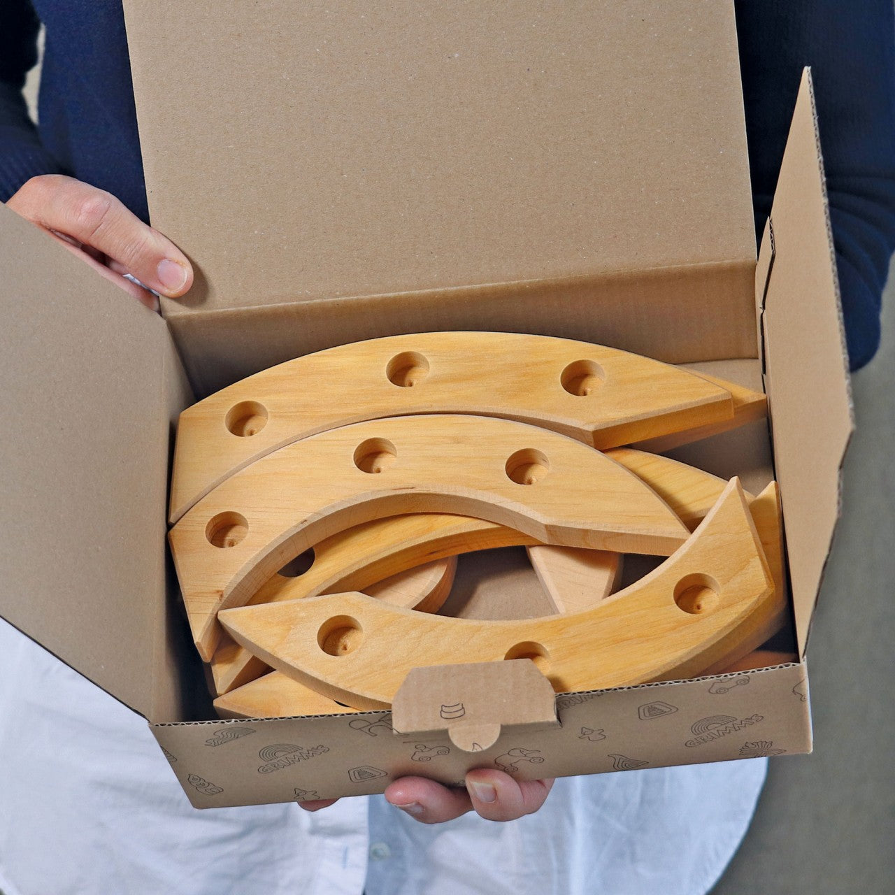 The Celebration Spiral makes special days shine in cozy candlelight. It can be arranged in a spiral shape or as a meandering path. The 8 elements with different natural wood tones and grains can hold up to 24 candles and decorative figures and can be individually designed. This also makes it a wonderful companion during Advent, turning the long wait for Christmas into a magical journey. Celebrating festivals and rituals brings young and old together and creates valuable connections and a sense of security.