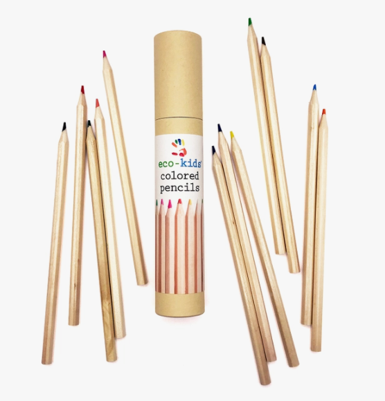 An eco friendly tube full of colored pencils for playtime, art time and travel time.