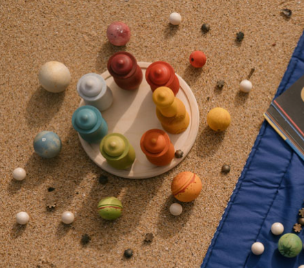 The Dear Universe contains more than 40 wooden pieces in different sizes (from 12mm to 45mm) and colors.