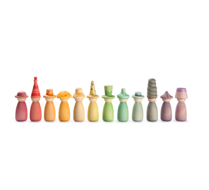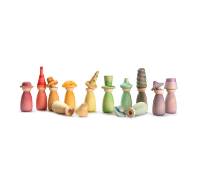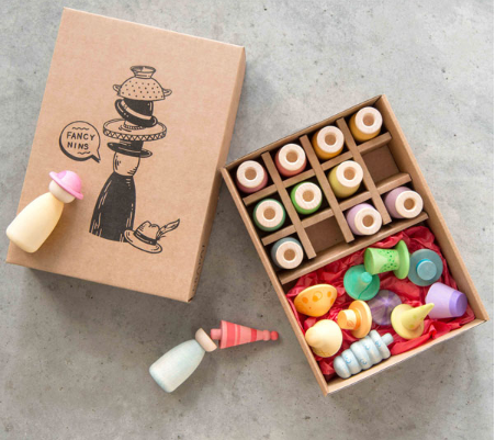 A wonderful new variation on Grapat's famous Nins figures. These 12 Nins come with interchangeable hats and bodies, so that their styles can change according to your mood. Keep them all safe and tidy in their reusable storage box!
