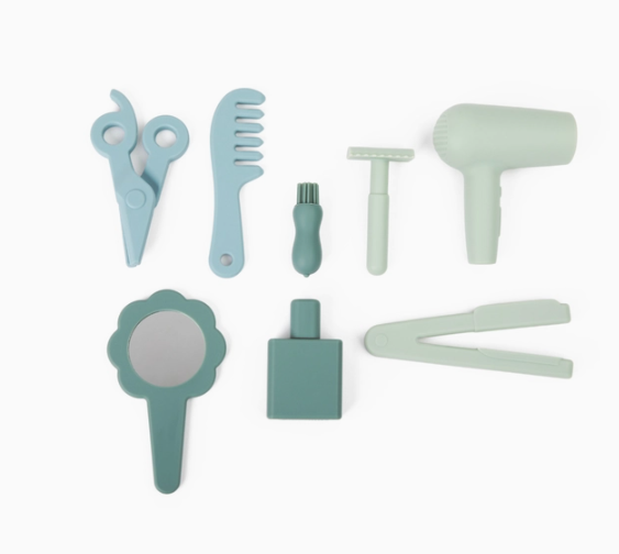 Crafted with care, it's lightweight and safe for endless creativity. Complete with scissors, comb, mirror, hairdryer, hair straightener, perfume/cologne bottle, brush, razor, and mirror, it's a stylish package for fine motor skill development.