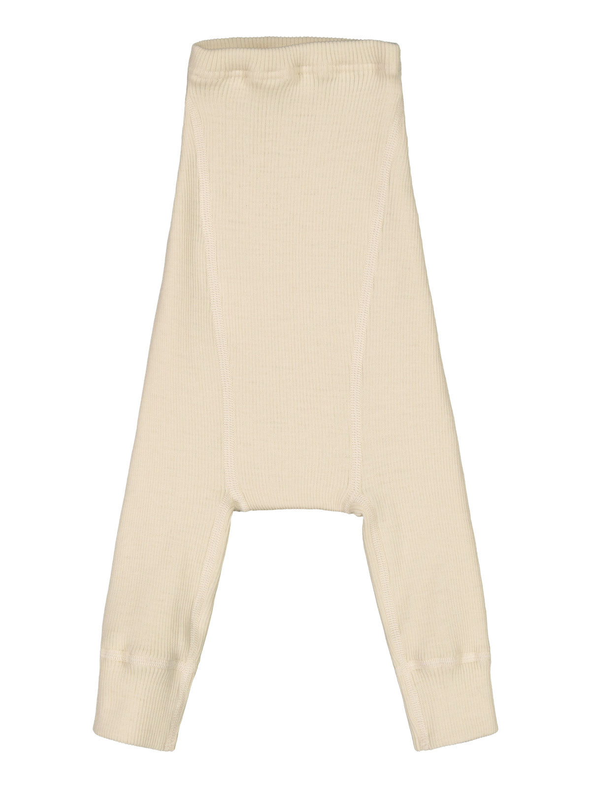 Flexible double ribbed knit with smooth seams. By turning the waist, the trousers have a long service life. Elasticated legs.
