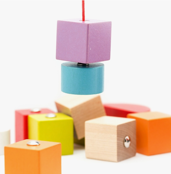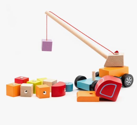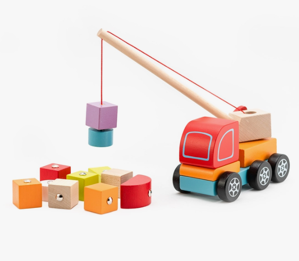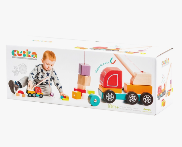 The set includes a crane and colorful blocks. The blocks are painted in pleasant colors and have different shapes. A magnet is placed on each part. A magnet is also placed on the crane, with the help of which the process of lifting the blocks takes place. Game task - with the help of a crane to move the figures from one place to another. You can also use the crane to load other machines.