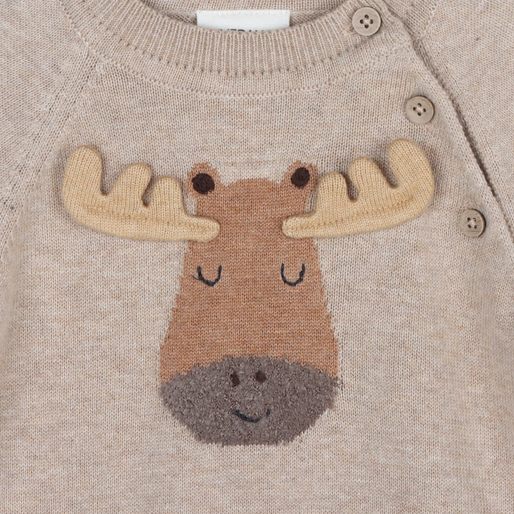 100% organic cotton sweater knit raglan sleeve baby pullover with applique, embroidery & jacquard design.