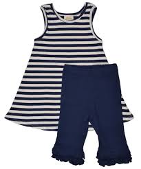 Set includes a Navy/Natural Stripe Tank and matching Navy Ruffle Shorts.