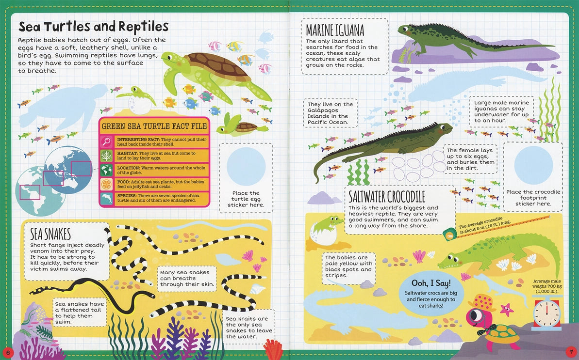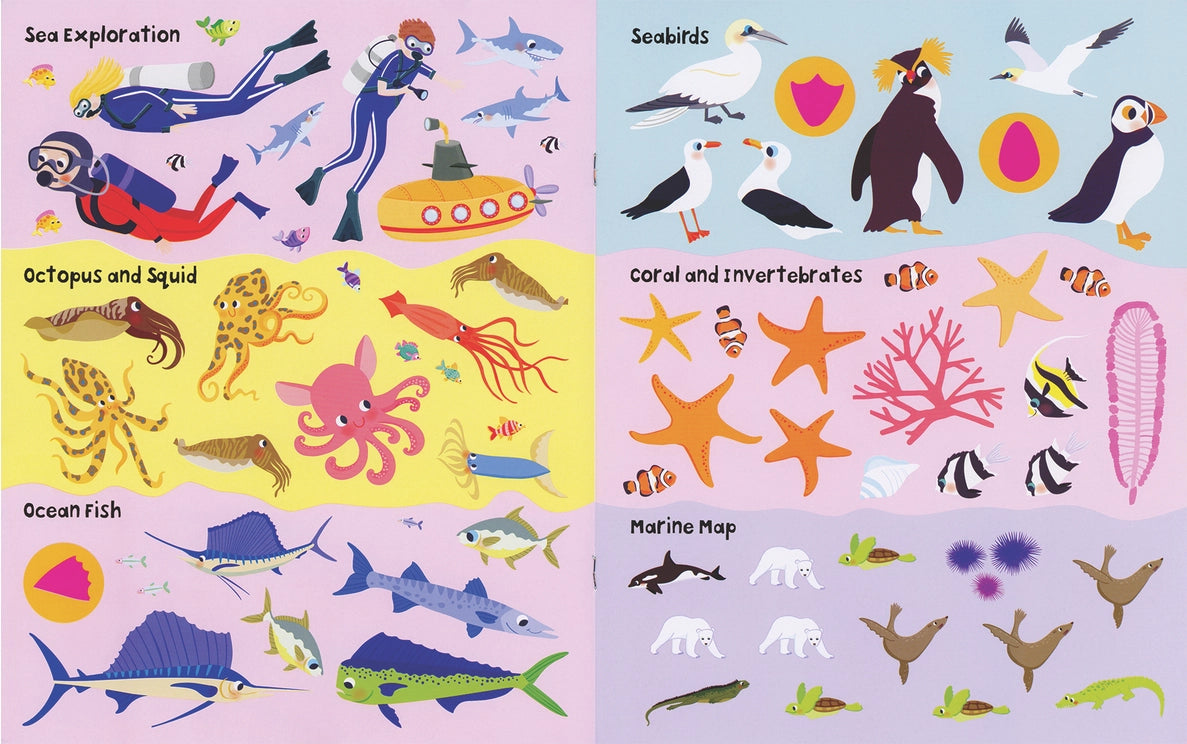 Probe the depths to discover all about life in the world's oceans. Bursting with fun and facts, these brightly colored books contain 100 stickers to help make learning fun! Paperback sticker book.