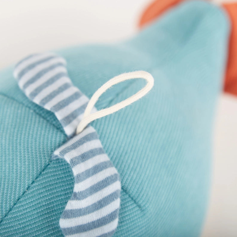 The snugly soft musical toy is made from organic cotton and sheep's wool inside.