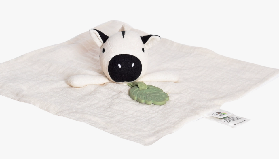 Teether is made from pure natural rubber & organic muslin fabric .