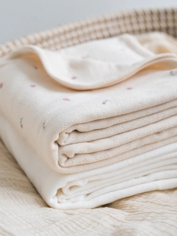 This pointelle swaddle is the ultimate hospital and diaper bag essential for your newborn. Made of 100% organic cotton pointelle fabric Water-based dyes ensuring long-lasting color vibrancy and durability Sustainably sourced and ethically produced Naturally hypoallergenic.
