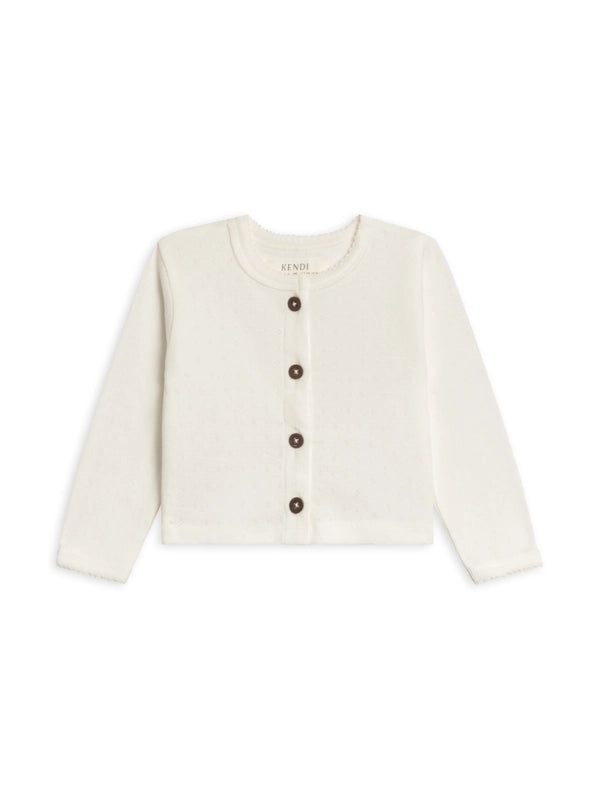 Pointelle Button Down Cardigan in Ivory