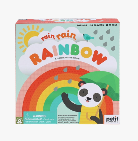 In this Rain, Rain, Rainbow Cooperative Game from Petit Collage, little ones must work together to win! Rain, rain, go away...the aim of this color-matching game is to complete the rainbow before the watering can fills up with raindrops. This cooperative game encourages teamwork and collaboration through playtime fun!