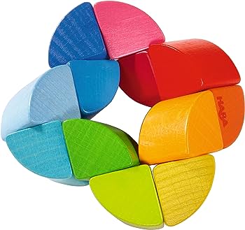 Your little one will be delighted with the rainbow ring clutching toy from haba! This adorable clutching toy features brightly colored wooden pieces tightly and securely fastened together with a unique, tested elastic band design this toy allows for the pieces to be moved freely around to create different shapes.
