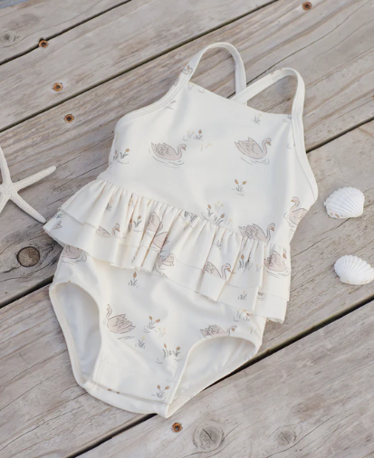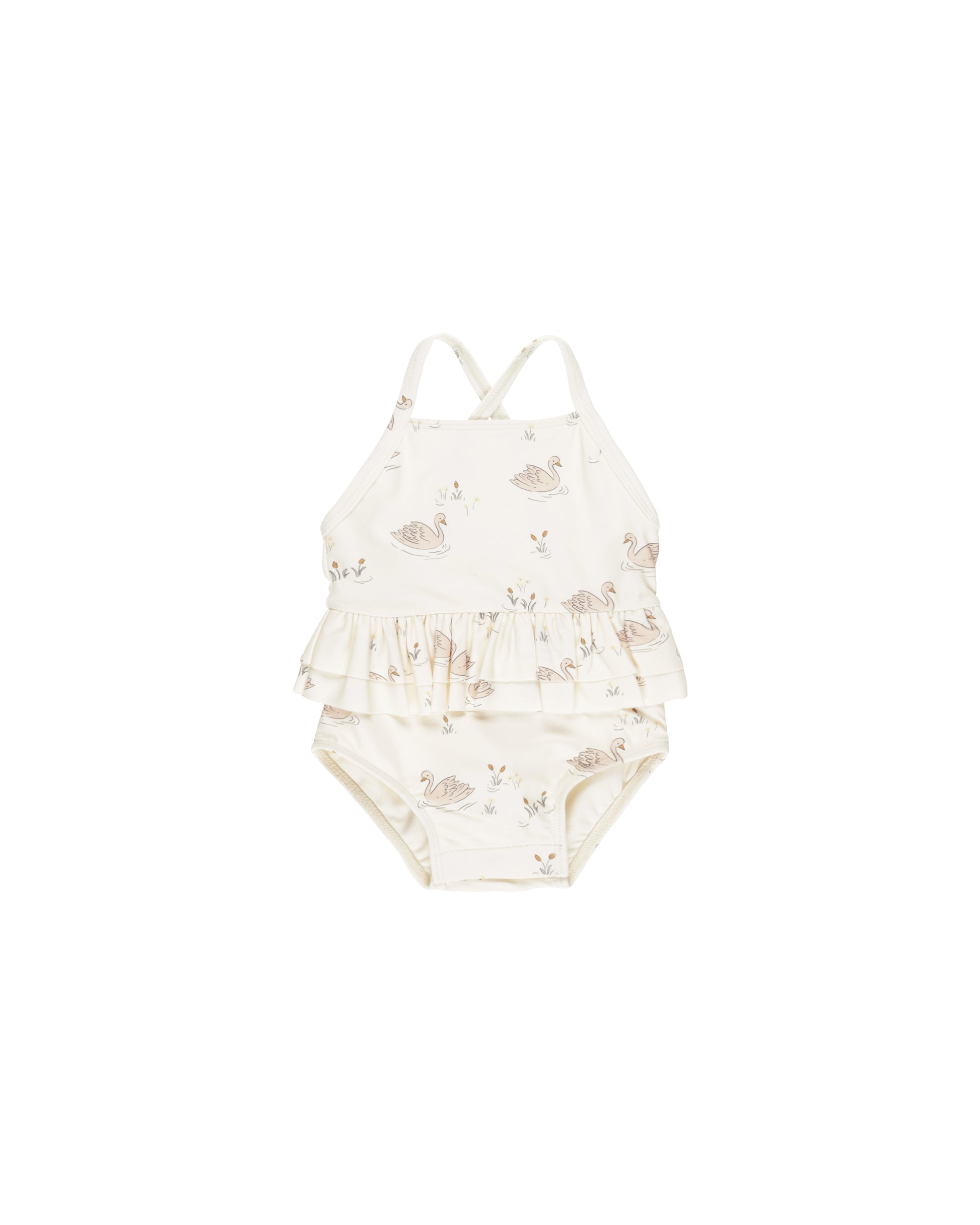 Featuring ‘swans’ print on ‘ivory’ hue. Sweet serenity takes the stage in this elegant swan style.