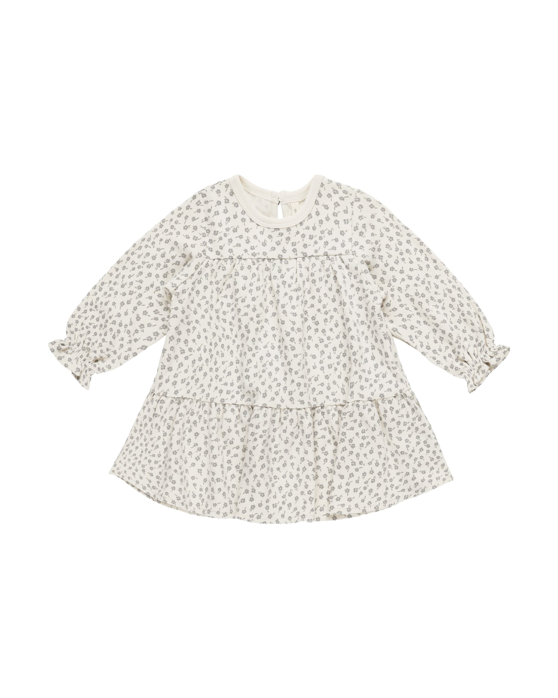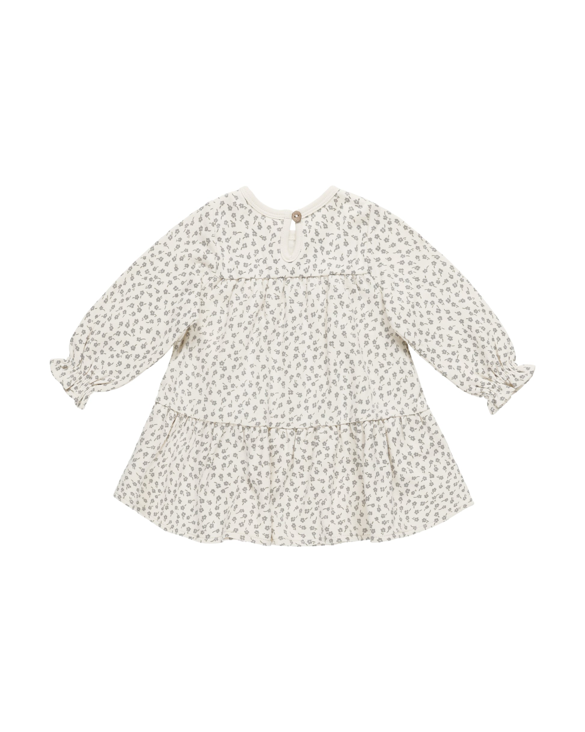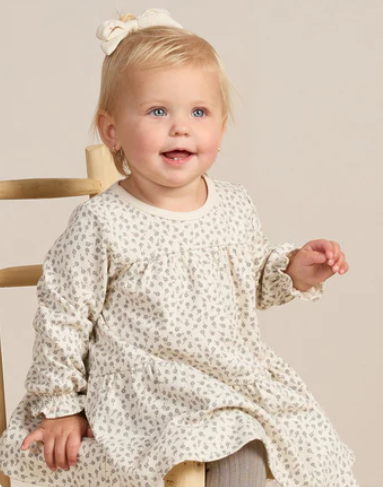 Velvety soft baby dress with tiers and long sleeves, has a coconut button back closure for easy changing as well also. All baby sizes includes our gathered bloomers!