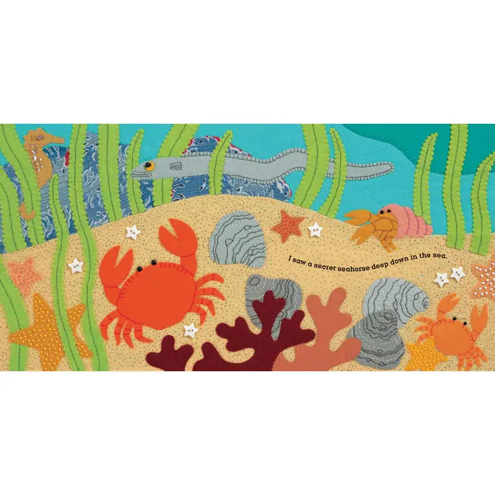 Now in our chewable, bendable, and washable Barefoot Baby-Proof Format! A little secret seahorse is hiding under the sea! Can you find him? He swims through the coral reef, darts past flickering fishes and even hides inside a shipwreck. Readers will delight in the interactive seek-and-find for the seahorse on every page, while meeting a colorful kaleidoscope of sea creatures along the way.
