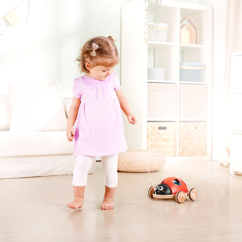 This adorable ladybug just loves going for walks and playing games! Comes with four different shaped blocks to place in shaped holes in the wings.