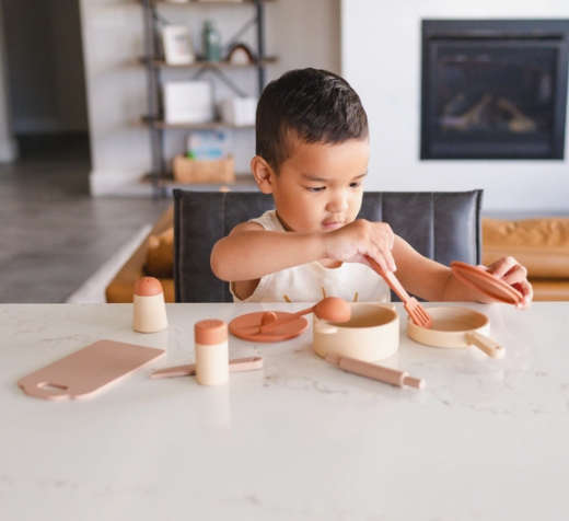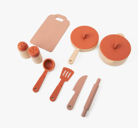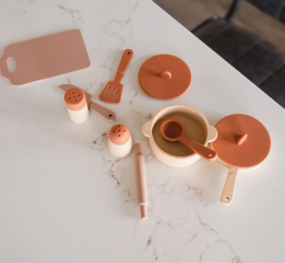 This cute silicone kitchen playset guarantees hours of fun while cultivating your little one's shape recognition and imaginative play.