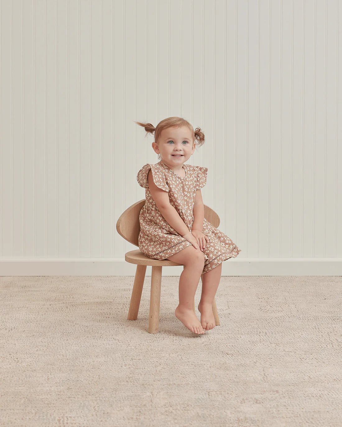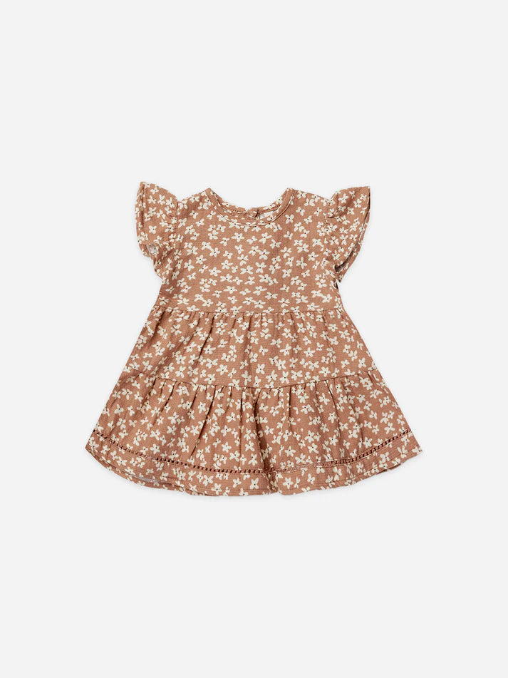 Multiple tiers, ruffles, and trims make up this beautiful short sleeve Belle dress in our organic cotton gauze fabric, complete with button-back neck closure. All sizes include bloomers.