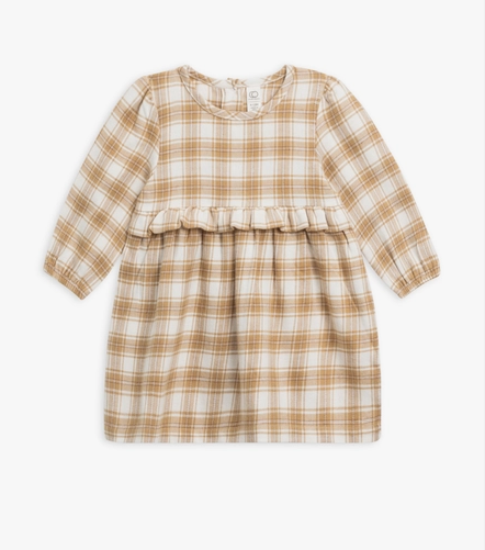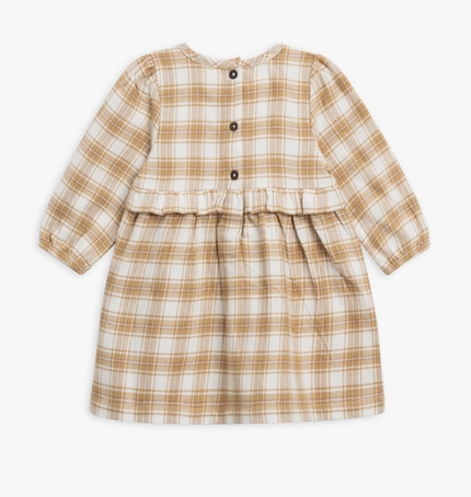 Sydney Latte Plaid Flannel Long Sleeve Ruffle Dress