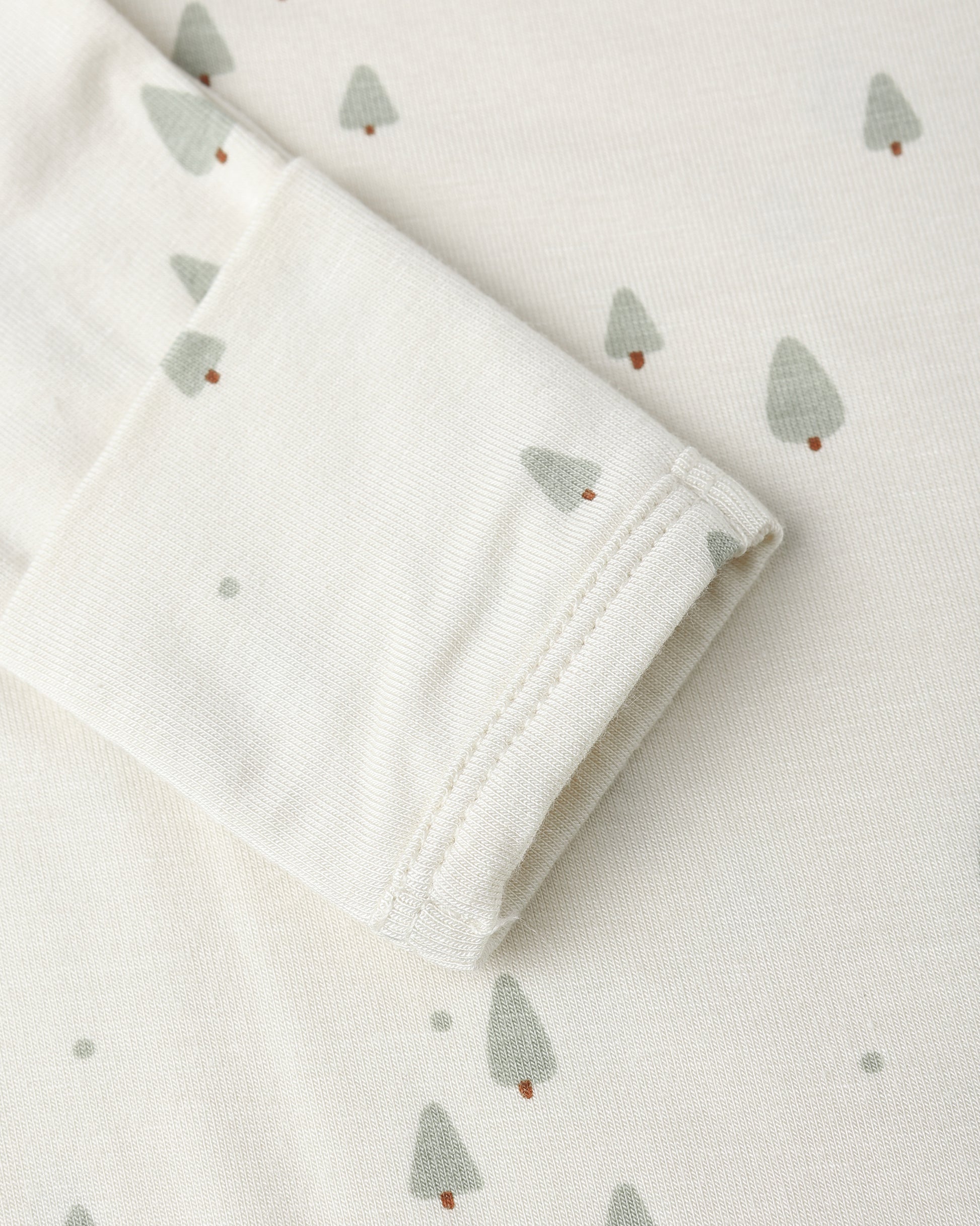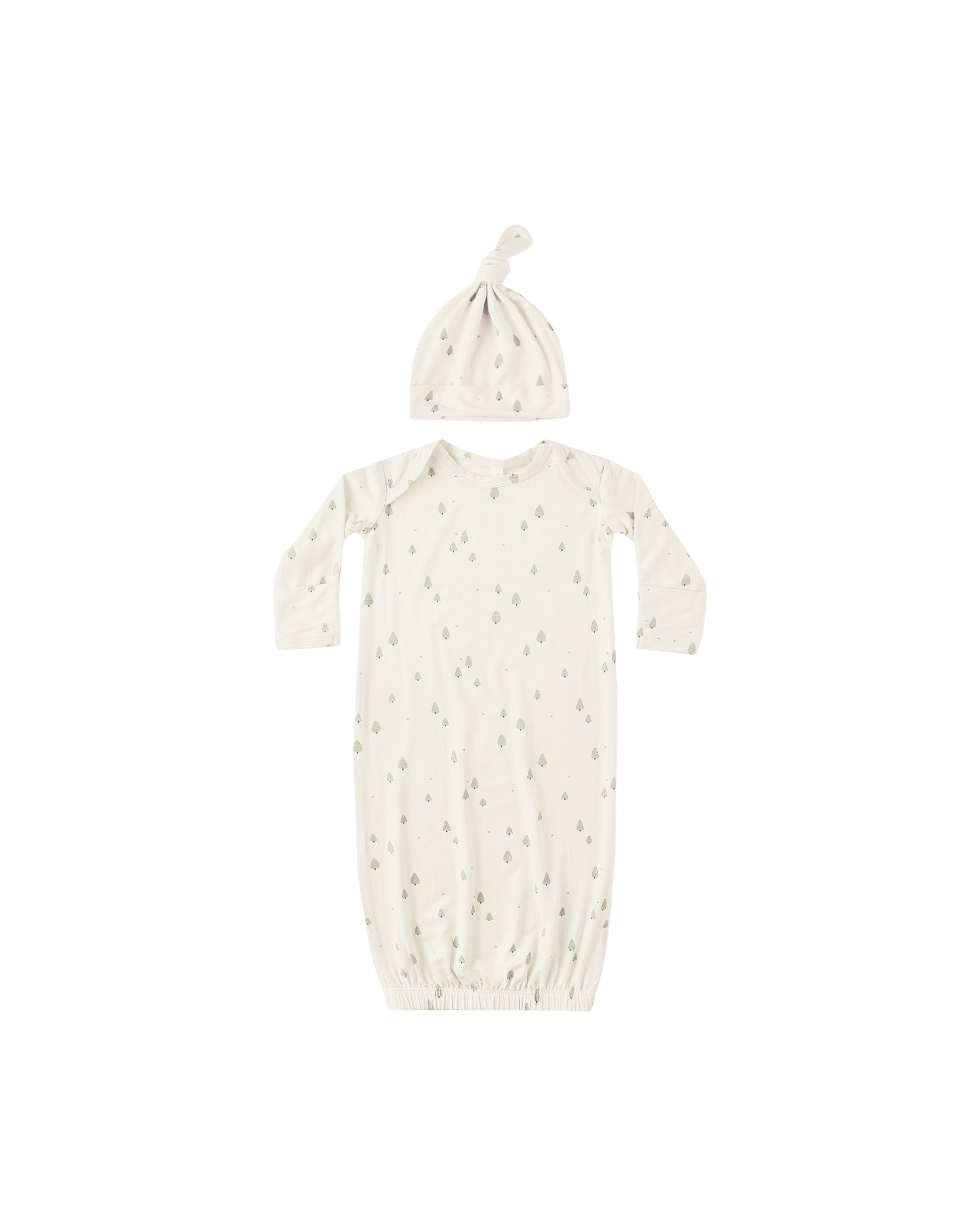 Signature soft and stretchy bamboo fabric, this baby gown features an elastic bottom opening and fold-over hand mitts, paired with a coordinating knotted hat for cozy comfort.