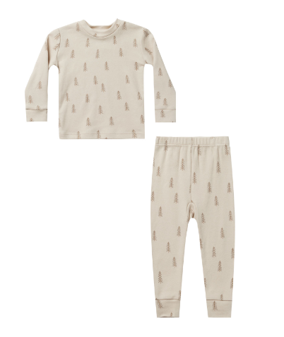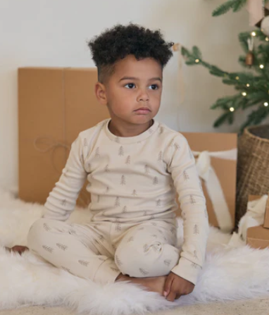 Featuring our ‘trees’ all-over print on natural. A larger tree than the Evergreen print, Trees is a winter wonderland favorite for little pajamas.