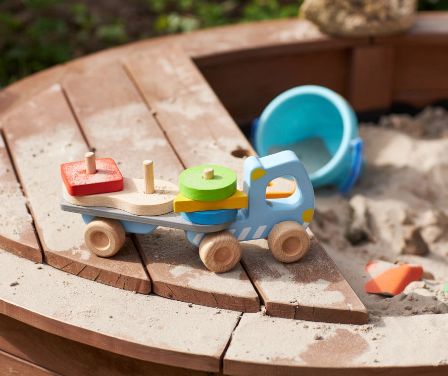 Discover the perfect blend of play and learning with this charming wooden stacking truck toy.