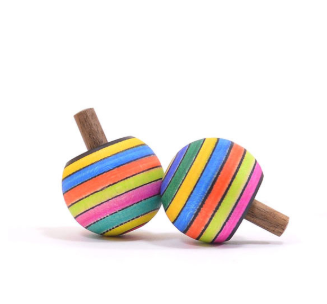 A fun top that turns over while it spins! Comes in a bright striped design, and is made of Maple wood.
