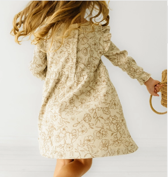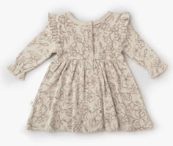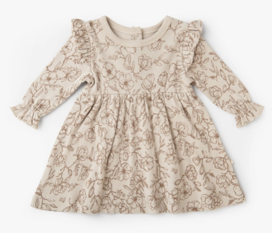 Little girls love to twirl, dance and explore. Make her first steps in style with this sweet dress that will be a staple piece in your little girl’s wardrobe. Made from soft knit for comfort and plenty of room for movement, it features a sweet neckline and ruffled sleeves perfect for any occasion!