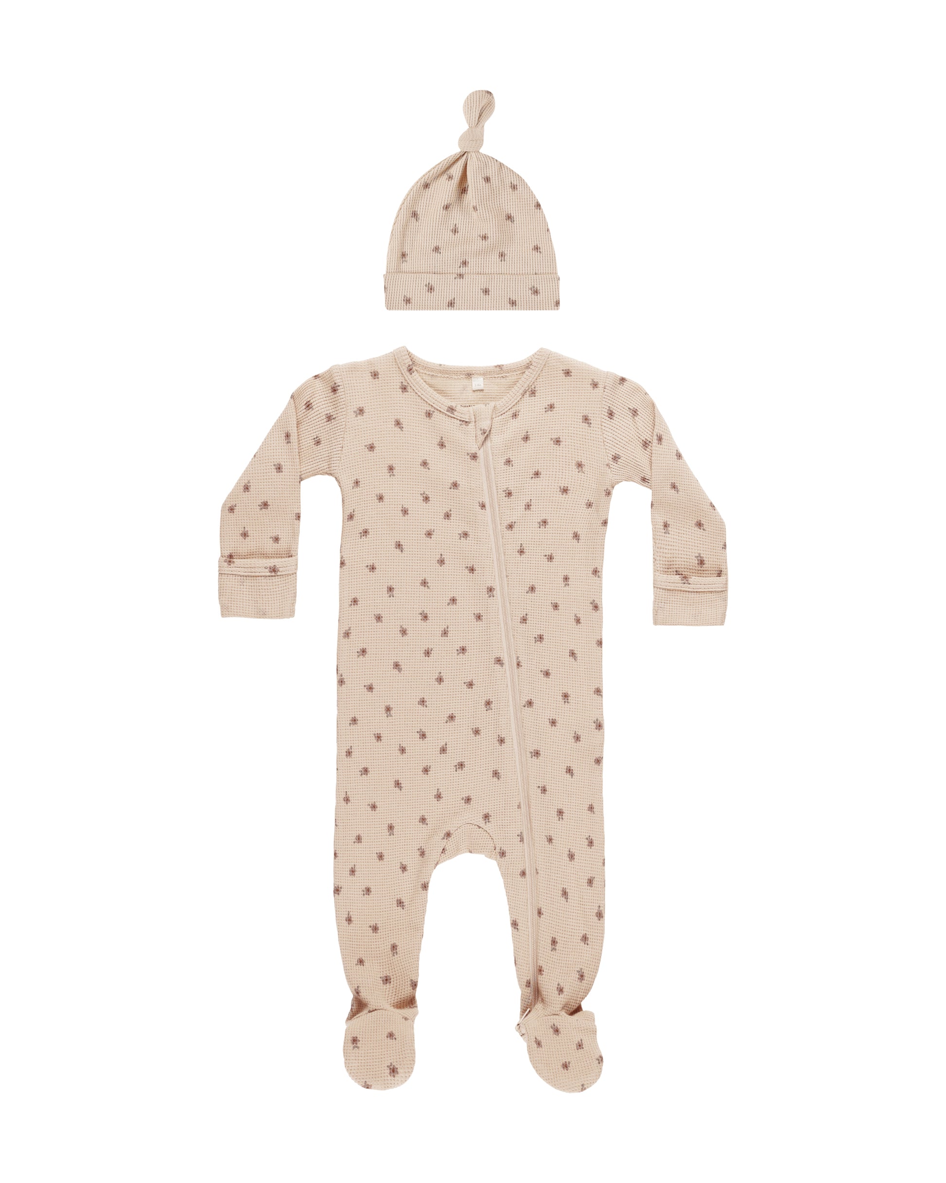 This zip long sleeve sleeper is made out of our soft organic fabric. Now pairing with knotted hat will keep your little one endlessly cozy.
