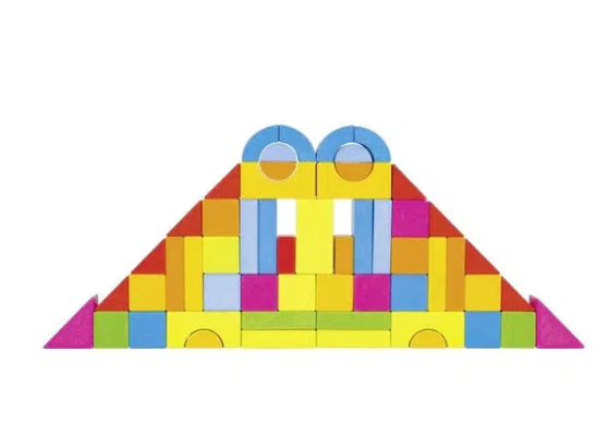 The 57 wooden building blocks in the colors of the rainbow with a block grid dimension of 3 centimeters are a real visual and tactile highlight.