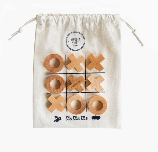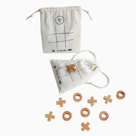 Tic Tac Toe for travel is a classic strategic game in a practical edition. Enclosed in a cotton sack, which also serves as the board, it's perfect for taking on journeys, providing entertainment no matter where you are. Simply open the sack to reveal the friendly board, where players can engage in an exciting game of Tic Tac Toe.